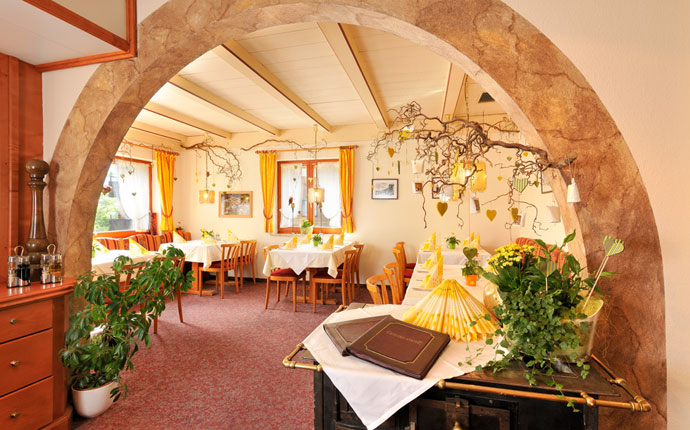 Bei entsprechendem Wetter ist auf unserer romantisch gestalteten Terrasse den ganzen Tag über Betrieb. Der Sonnenuntergang am Hohen Ifen hat es unseren Gästen aber besonders angetan und da werden die Plätze schon mal knapp. Im Restaurant herrscht gediegene Atmosphäre und bietet den richtigen Rahmen für kulinarische Genüsse. Sowohl drinnen wie draußen überwiegt entspannte Gelassenheit, bleibt kein Platz für Stress und Alltagsgedanken. Hier bei uns ist gut aufgehoben, wer abschalten und neue Kraft tanken möchte.